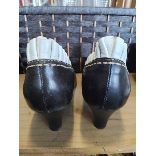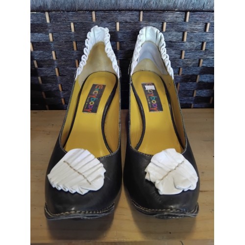 Everybody by B.Z. Moda Italian Leather Heels Black White Ruffle Size 37